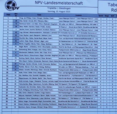 DAS Alfelder-Team um Karl Hahlbohm hat mit einem gewonnen Spiel Platz 27 erreicht und einen Nachrückerplatz zur DM in Berlin, Elina Schomburg und die Alfelder Männer haben mit 3 gewonnen Spielen Plalz 7 erreicht und die Qualifikation zur DM in Berlin. ( Quelle NPV 18.8.25) .